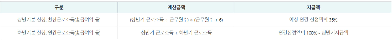 근로장려금 반기신청 지급액 산정방법