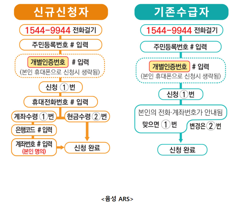(본인확인 후 신청가능하며 주민등록번호, 지급받을 본인 명의의 계좌번호 등을 사전 준비)
