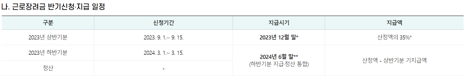 근로장려금 반기신청·지급 일정