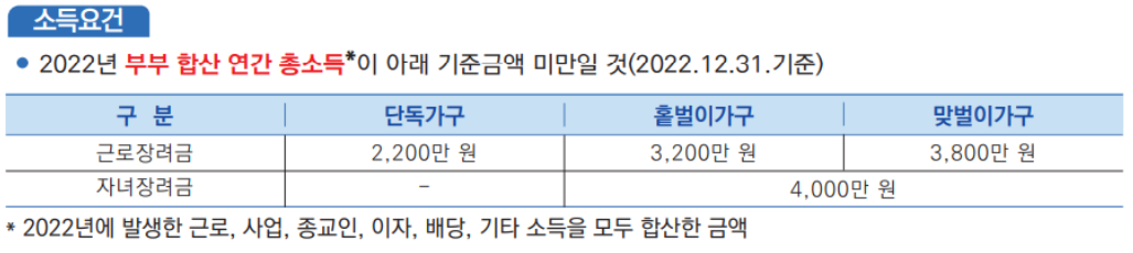 2022년에 근로소득, 사업소득, 종교인 소득이 있는 거주자로서 아래 요건을 모두 갖추어야 합니다.